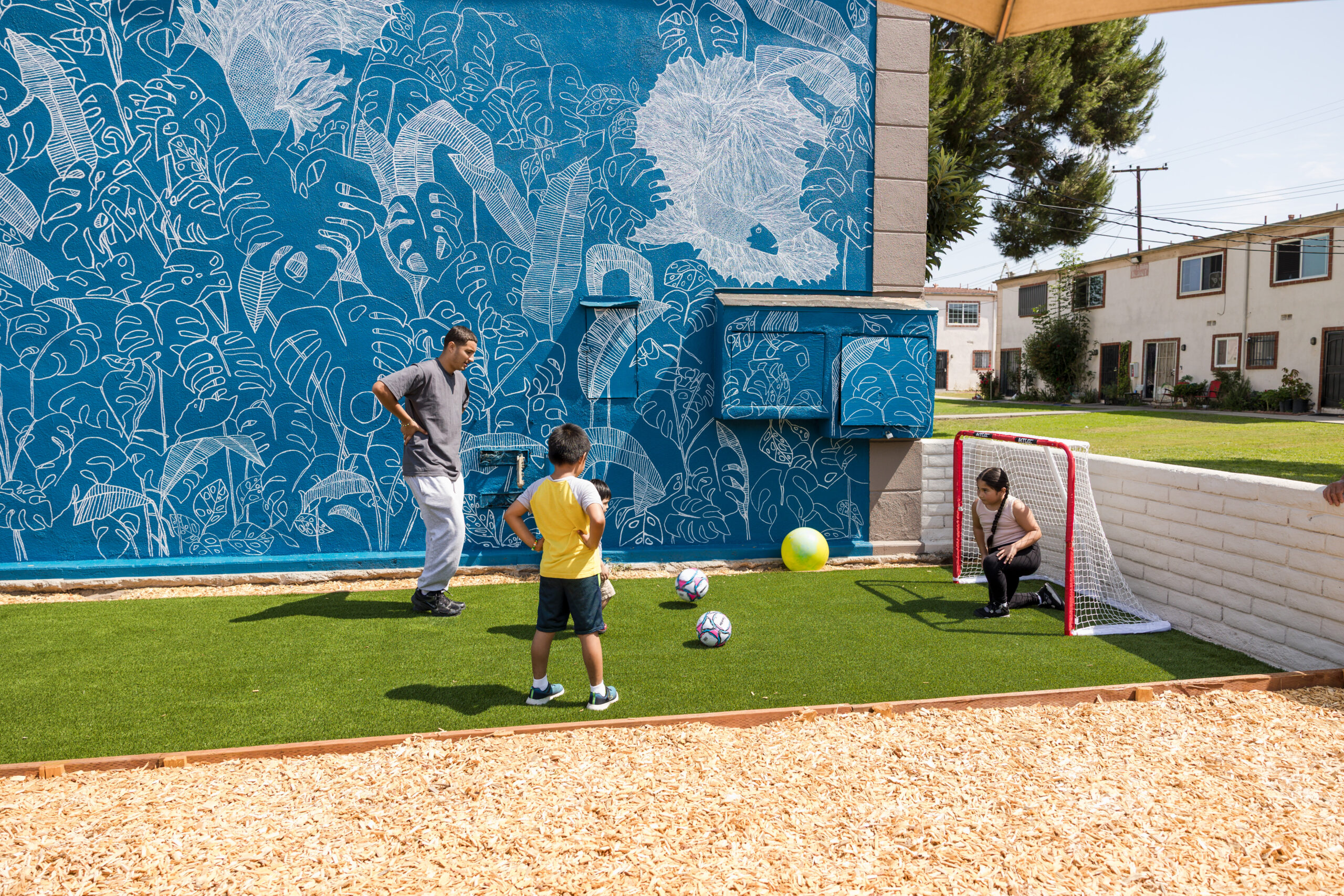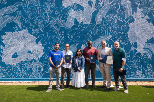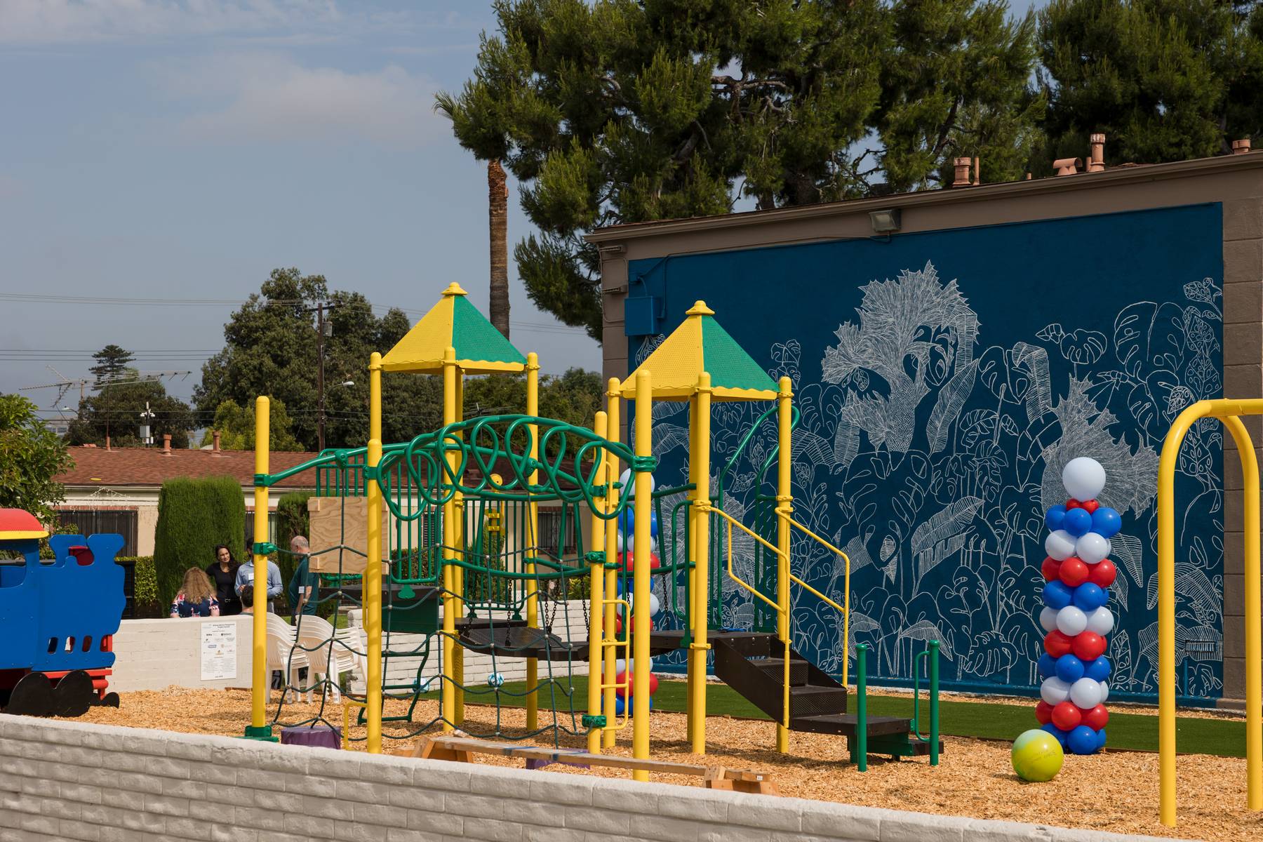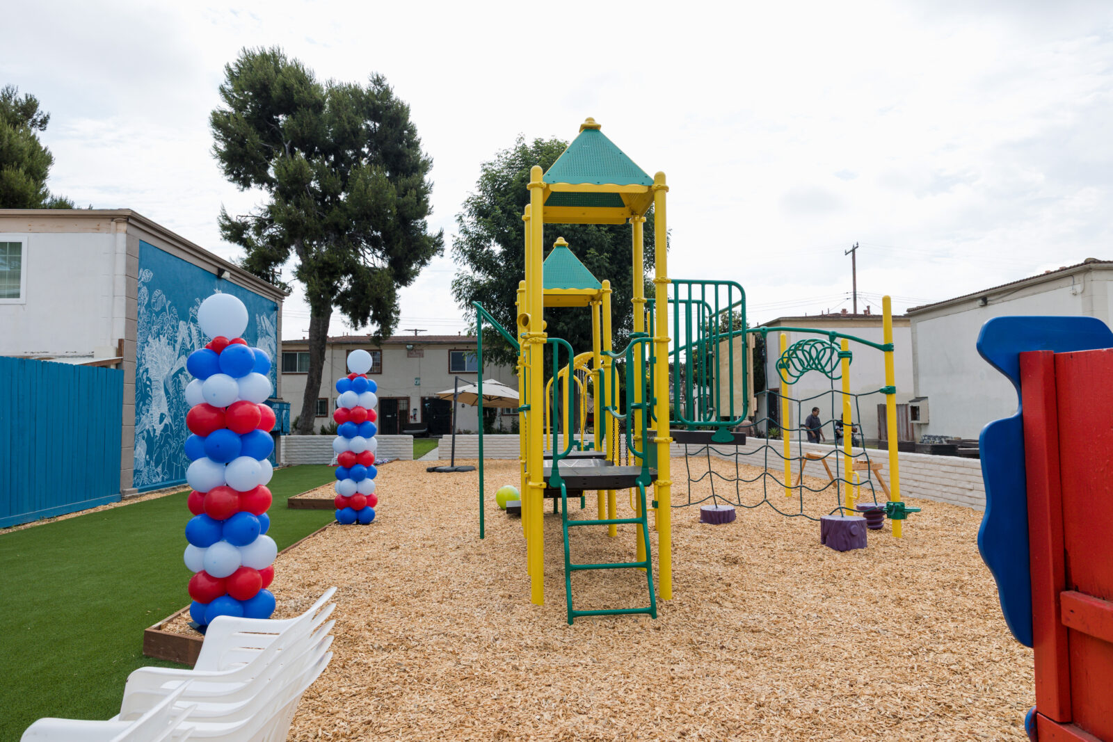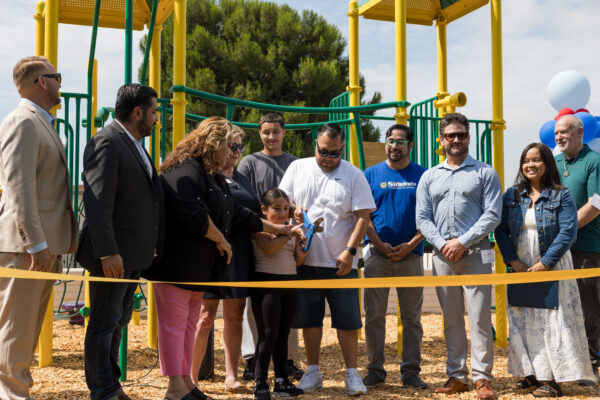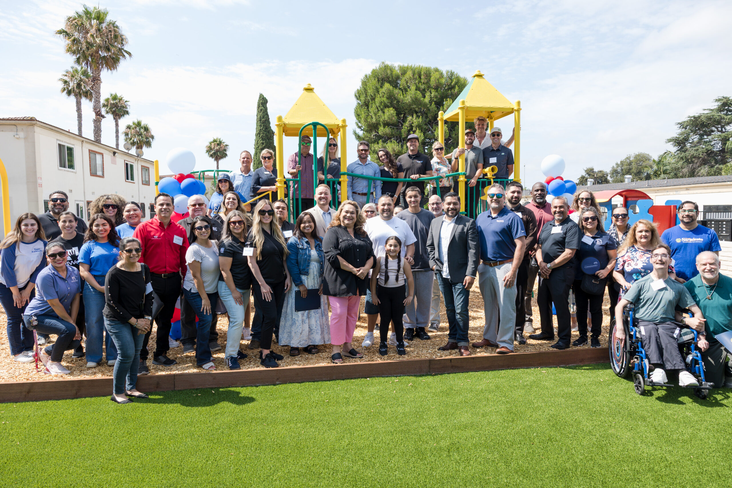 In July 2025, the Bishop Manor community celebrated the completion of a brand, new playground in their complex. The ribbon cutting ceremony featured a beautiful mural, a tour of the new playground, and a few words from Robert Alcaras, the Board President of Bishop Manor HOA, who has worked tirelessly to bring KidWorks back to Bishop Manor. The playground will be a source of joy and belonging for the new center.